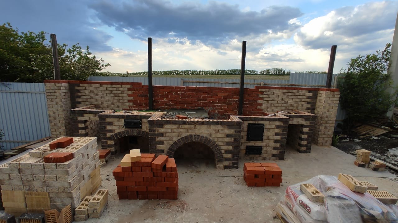 Печник Александр Егерев, тел. 89022077389 В данном проекте были выполнены работы: - Проектирование и составление сметы; - Подготовка и заливка фундамента; - Кладка летней кухни; - Строительство летней беседки.
